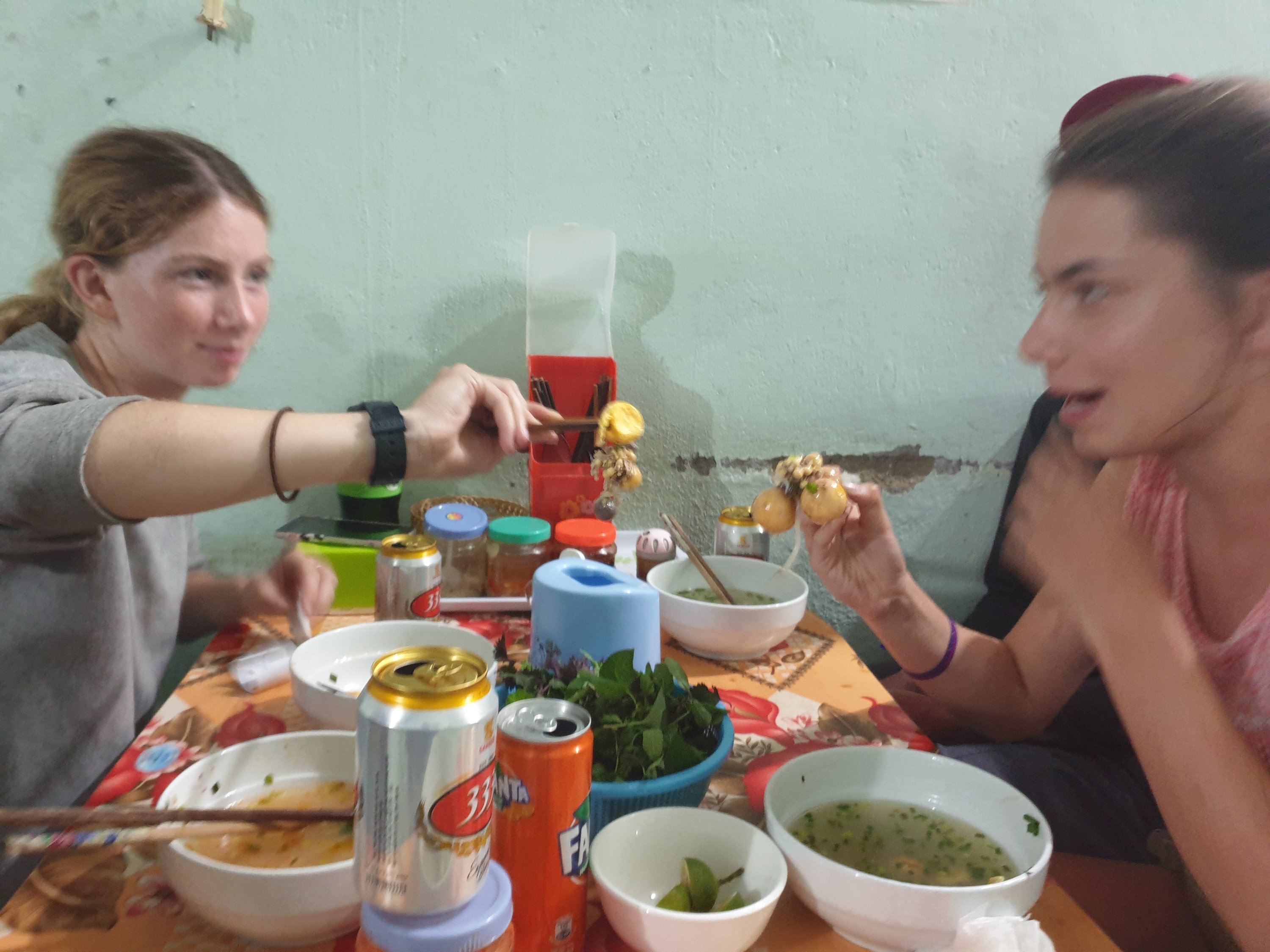 We stayed in basic but lovely homestays, tried some strange local food – supposedly those orange things are eggs but we were never truly convinced!