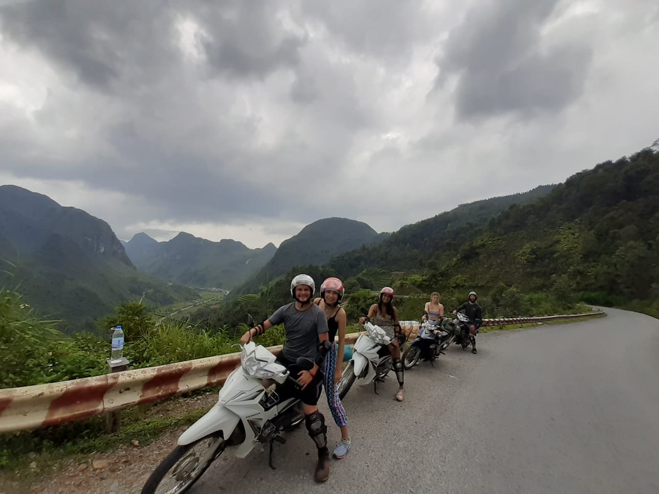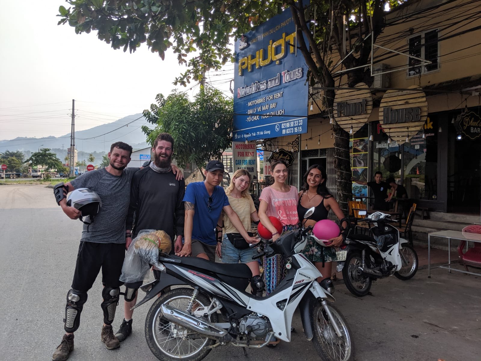Luckily, as we pulled into Ha Giang town a saviour made her way onto the bus and said “if you haven’t got a hostel booked, you can sleep here for free, ANDDDD we also rent out bikes for the loop”… legend! All four of us quickly snapped at the offer – this was Jamie and I plus Isa who had trekked with us through the rice terraces in Sapa, and Ellie who we’d met at the bus station on the way to Ha Giang.
