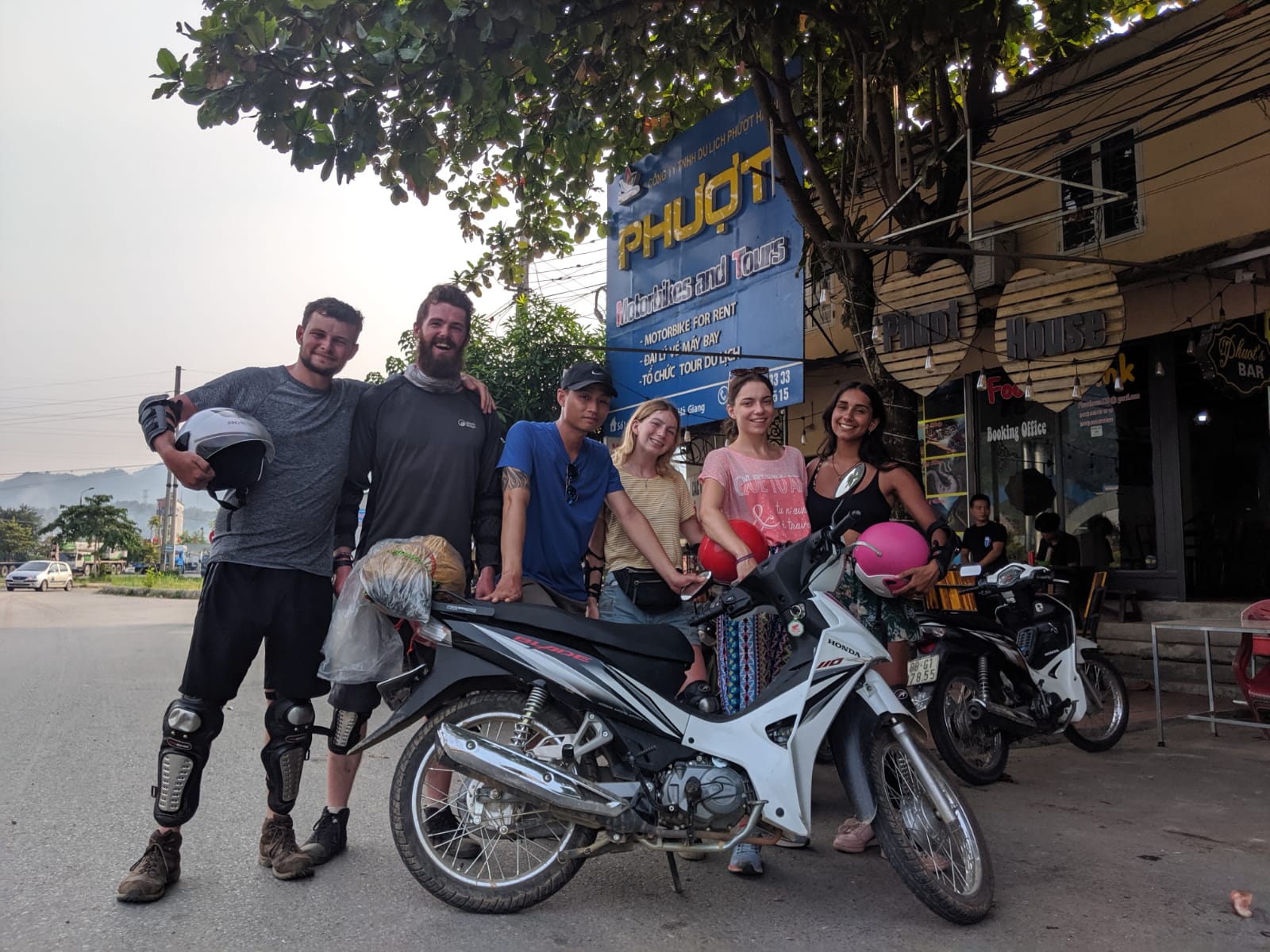 Luckily, as we pulled into Ha Giang town a saviour made her way onto the bus and said “if you haven’t got a hostel booked, you can sleep here for free, ANDDDD we also rent out bikes for the loop”… legend! All four of us quickly snapped at the offer – this was Jamie and I plus Isa who had trekked with us through the rice terraces in Sapa, and Ellie who we’d met at the bus station on the way to Ha Giang.
