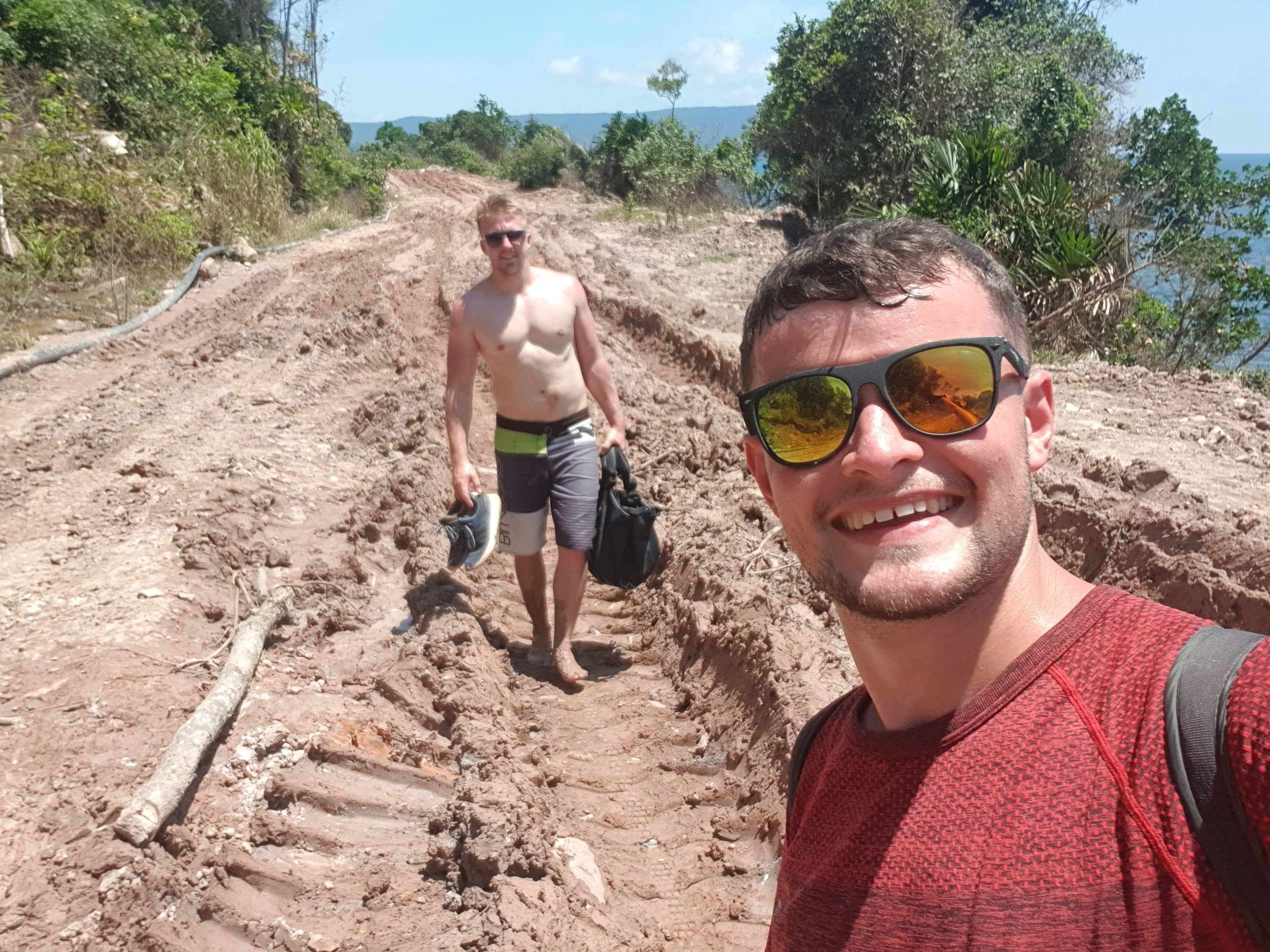What had been sold as a short walk turned into half a days trekking along dirt tracks that nearly swallowed up all of our shoes! See below…