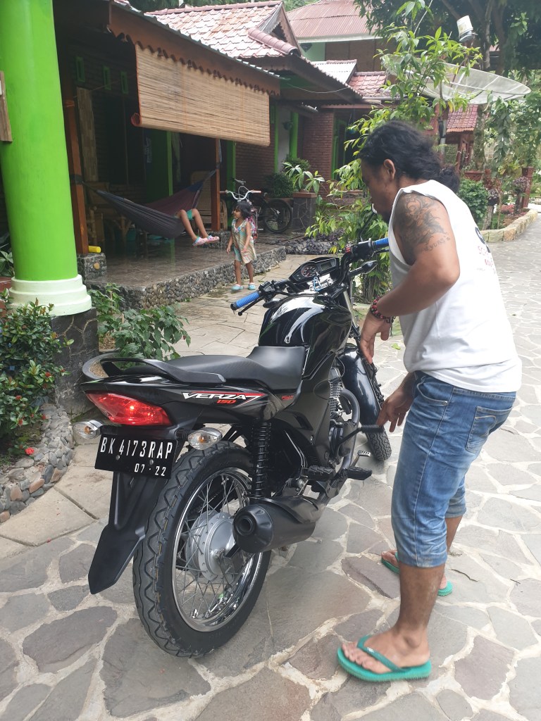 Anyway….. the bus took me to Binjai, just north of Medan city! Immediately hounded by several motorbike/taxi/’you’ll understand when you see a picture’ drivers, it turned out I needed to get to a different bus stop if I wanted to make the onward journey into the rainforest. Obviously.