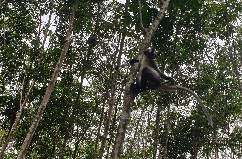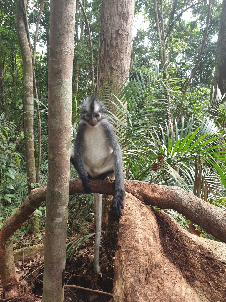 Shortly after entering the national park, we were incredibly lucky to see our first glimpse of the wildlife that fills this part of the world. A curious family of Thomas Leaf Monkeys!