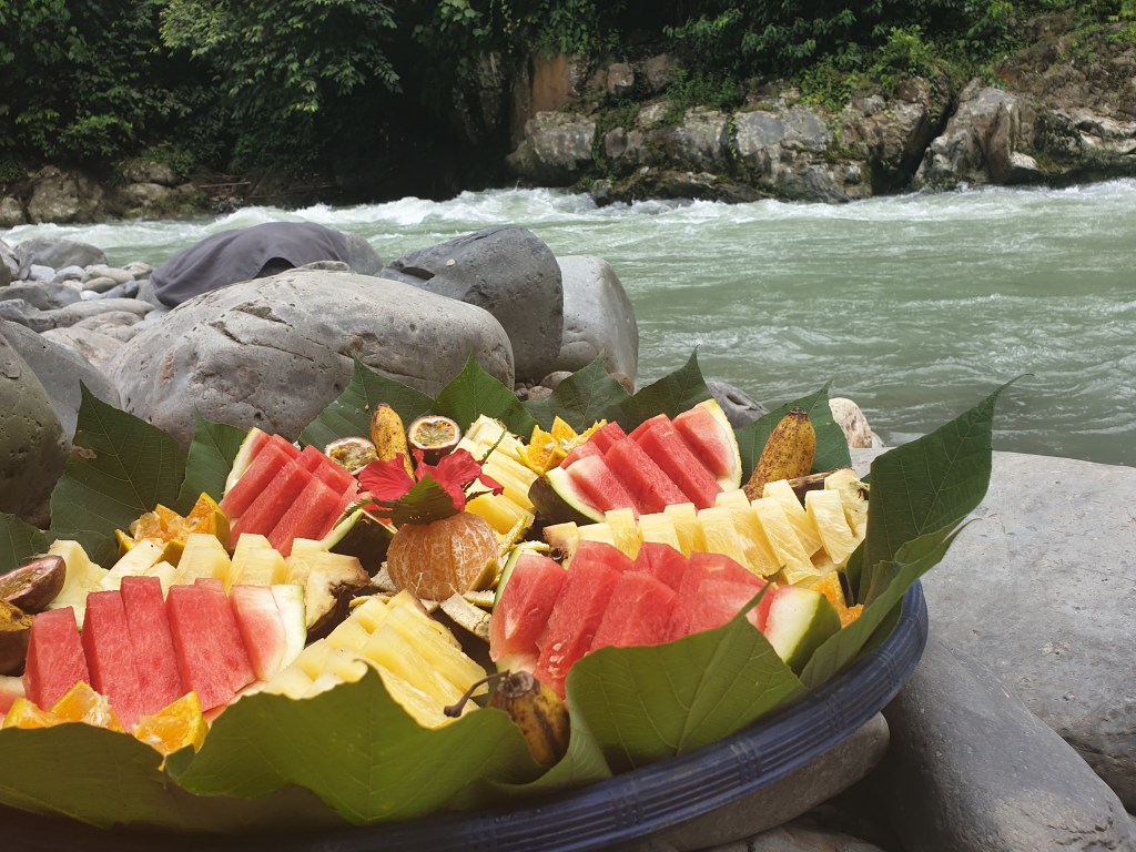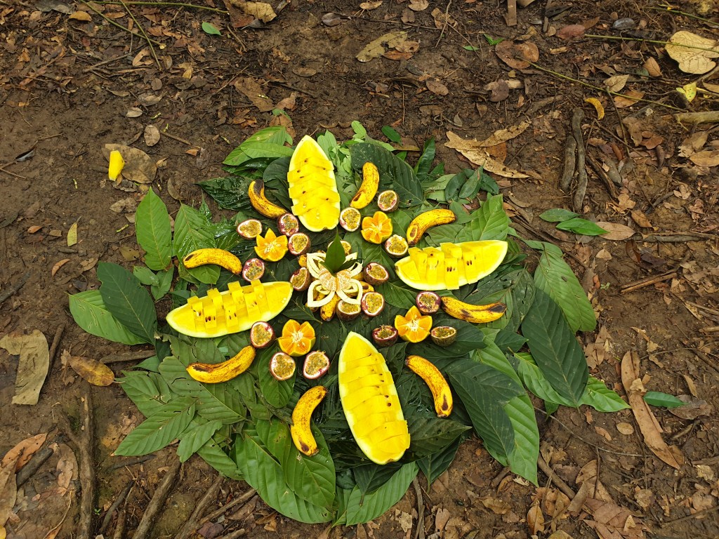 With all of us sweating like crazy in the humidity of the jungle, we took refuge and our two lovely guides prepped a selection of fresh fruit for us!