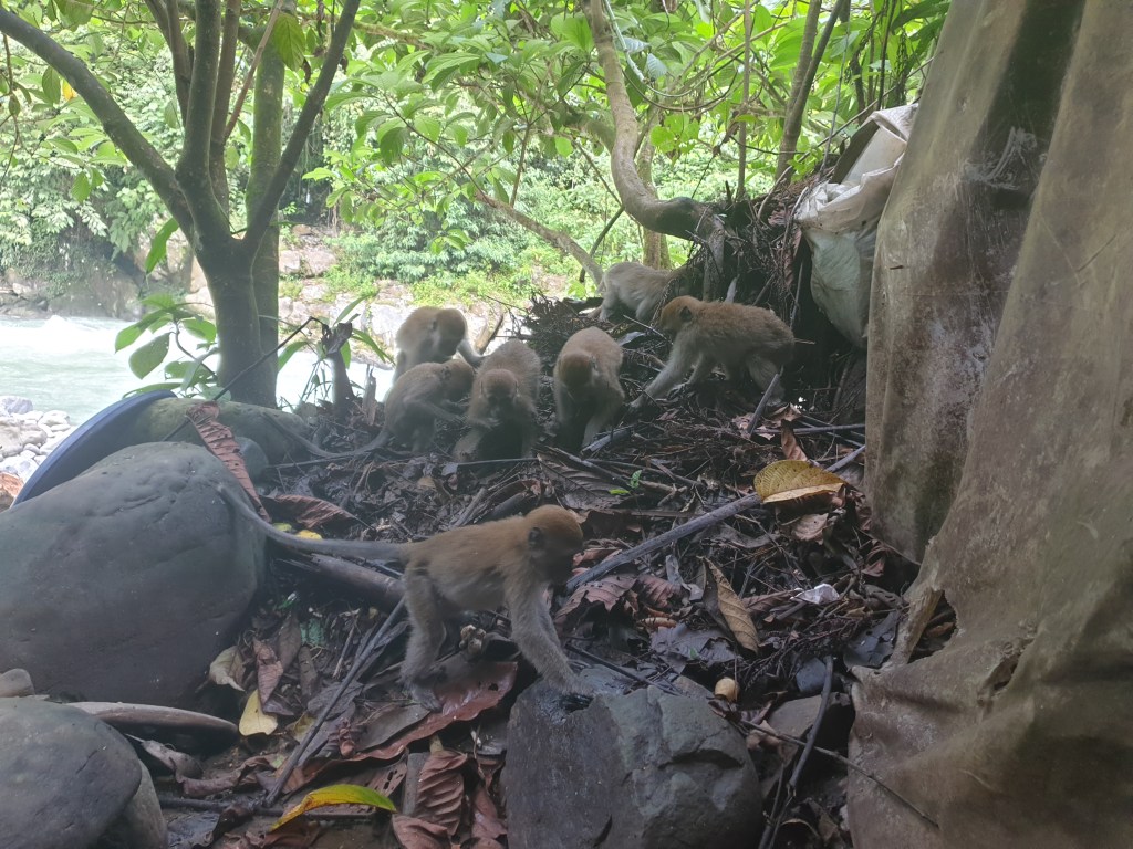 We later met one of the rescued orangutans, Nina, and her infant. The backstory here is that almost a decade ago, Indonesia had a serious problem with the trafficking of an already endangered orangutan population with many being kept in illegal captivity. In efforts to halt and prevent this, the government located and seized the orangutans being kept like this, and brought them to a sanctuary located very close to Bukit Lawang town. Here they could learn the vital skills needed to survive and prosper in their natural jungle habitat. For a wild orangutan to learn these skills though is an 8 year process. Now though, after almost a decade of work, the sanctuary has been closed down, with its entire population having been rehabilitated into the national park.